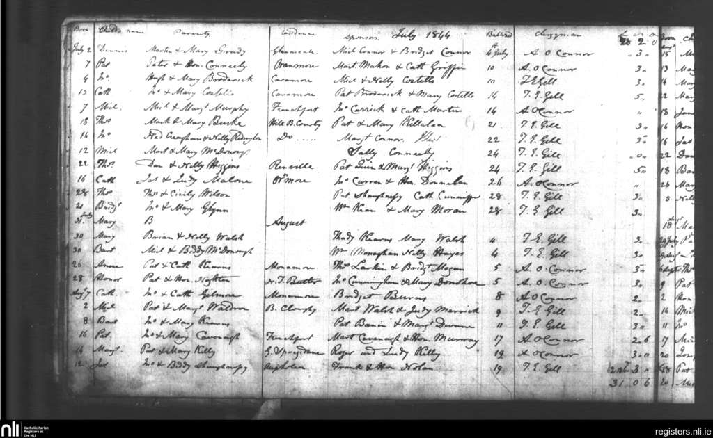 Oranmore; County of Galway; Diocese of Galway. Baptisms, July 1844 to Aug. 1844