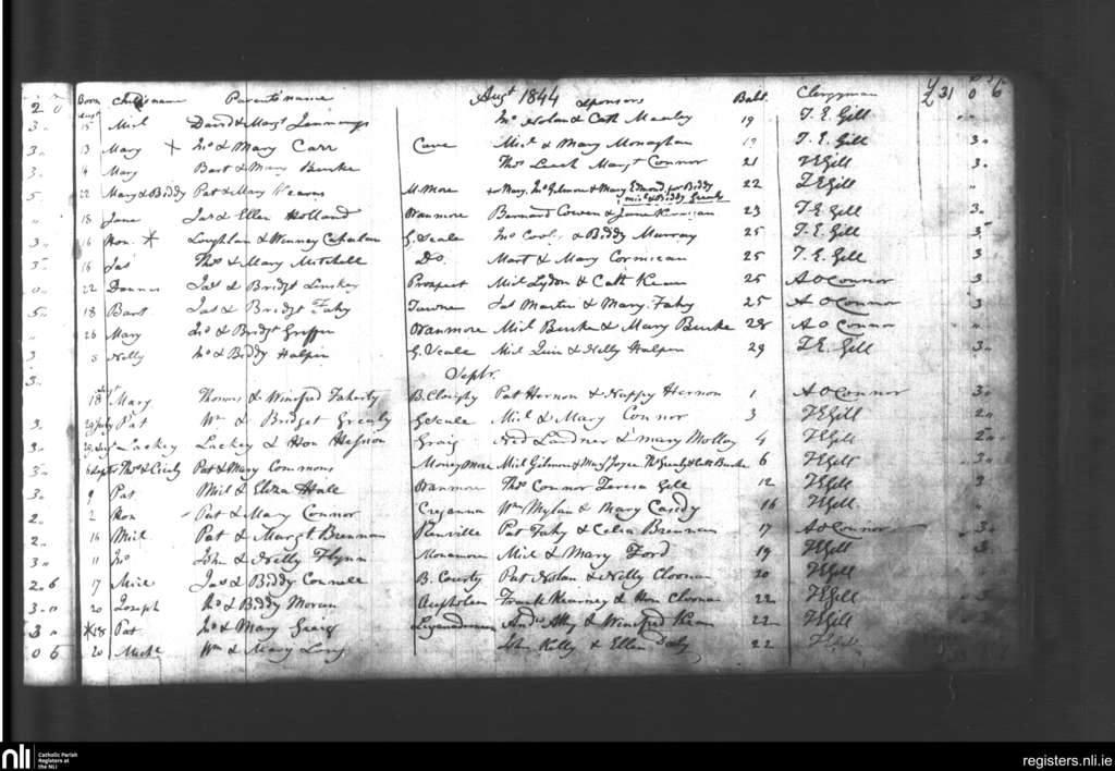 Oranmore; County of Galway; Diocese of Galway. Baptisms, Aug. 1844 to Sep. 1844