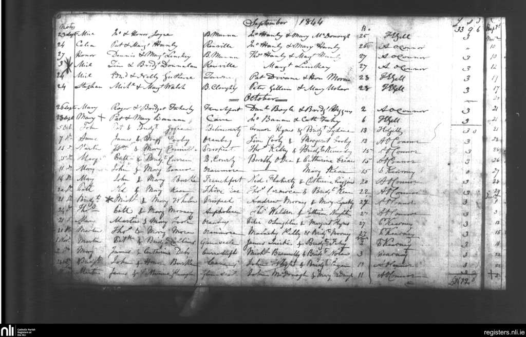 Oranmore; County of Galway; Diocese of Galway. Baptisms, Sep. 1844 to Nov. 1844