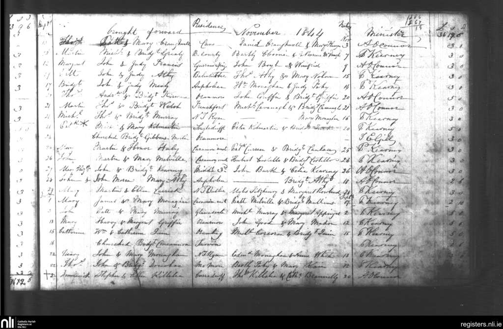 Oranmore; County of Galway; Diocese of Galway. Baptisms, Nov. 1844 to Dec. 1844