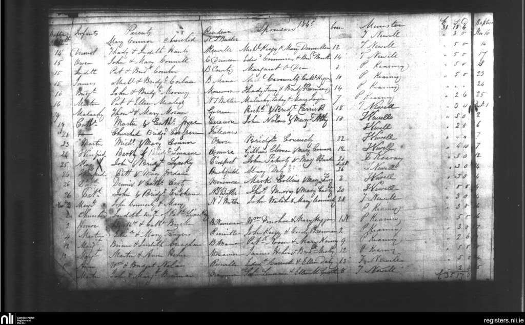 Oranmore; County of Galway; Diocese of Galway. Baptisms, Oct. 1845 to Nov. 1845