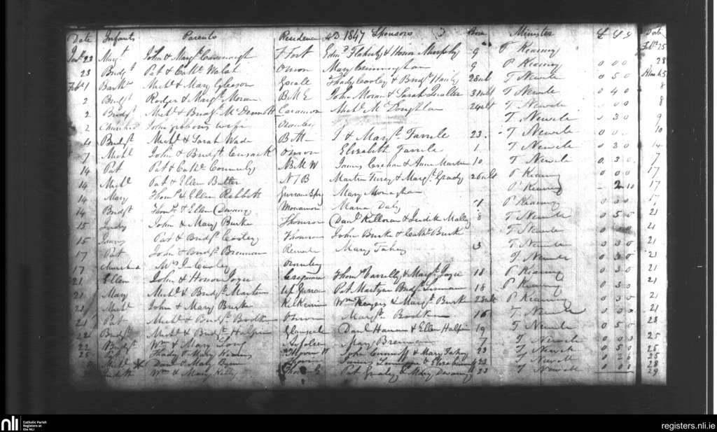 Oranmore; County of Galway; Diocese of Galway. Baptisms, Jan. 1847 to Feb. 1847