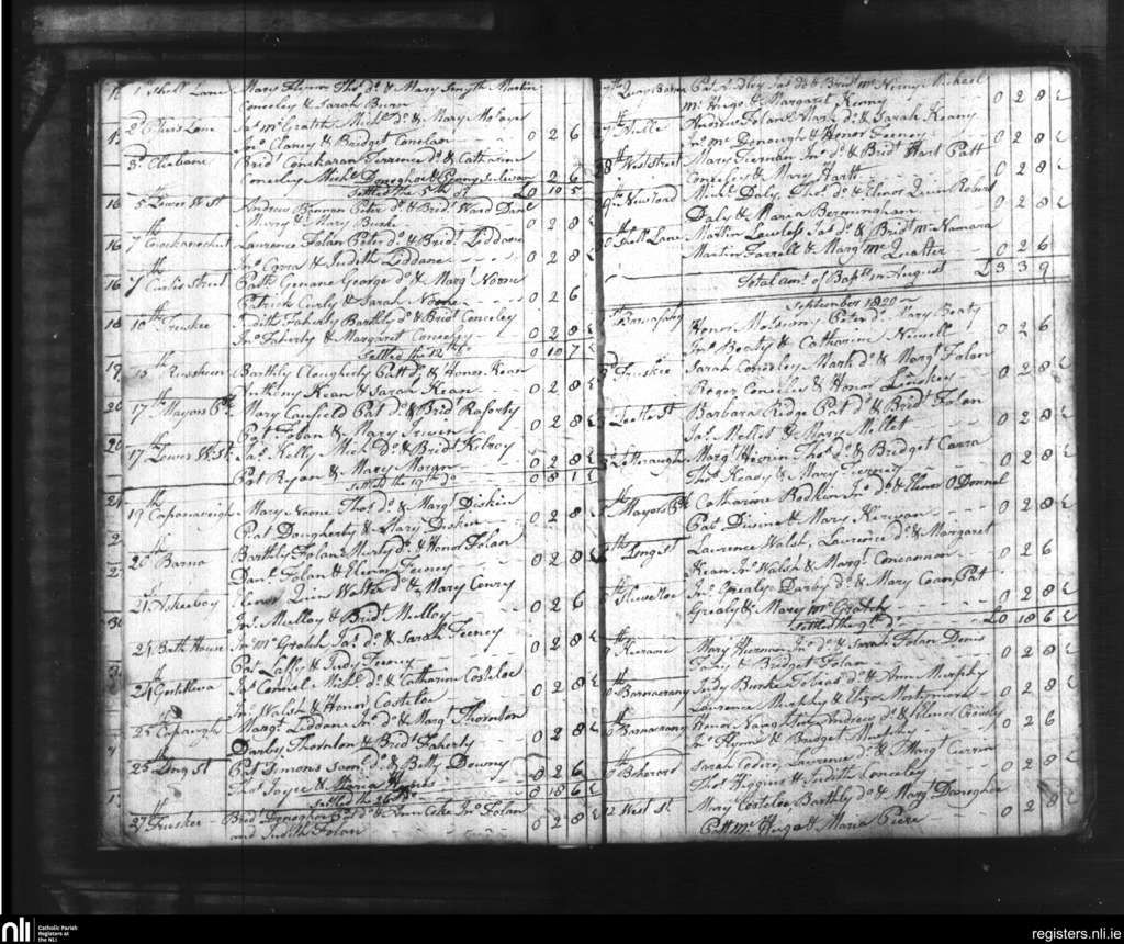 Rahoon; County of Galway; Diocese of Galway. Baptisms, Aug. 1820 to Sep. 1820