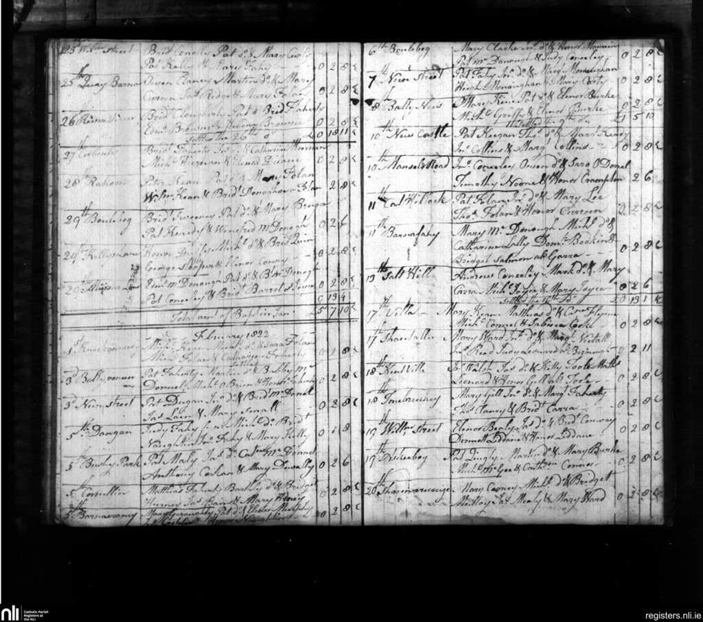 Rahoon; County of Galway; Diocese of Galway. Baptisms, Jan. 1822 to Feb. 1822