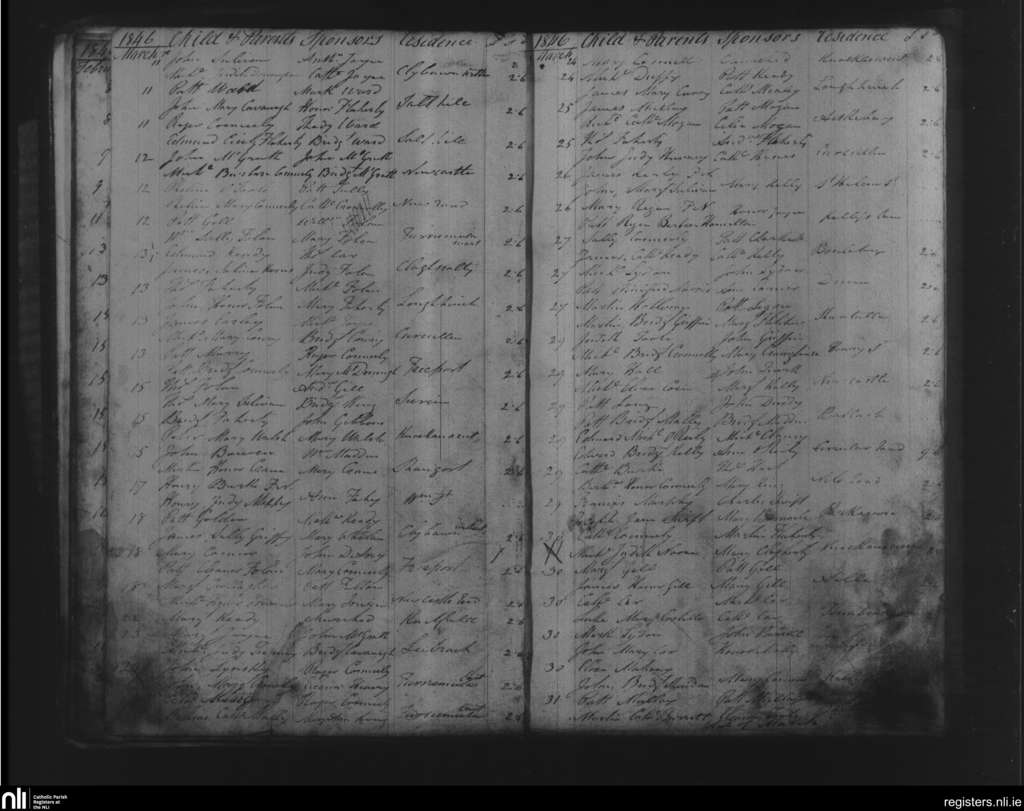 Rahoon; County of Galway; Diocese of Galway. Baptisms, Mar. 1846