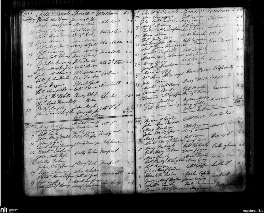 Rahoon; County of Galway; Diocese of Galway. Baptisms, May 1855 to July 1855