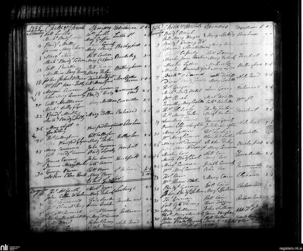 Rahoon; County of Galway; Diocese of Galway. Baptisms, Nov. 1855 to Dec. 1855
