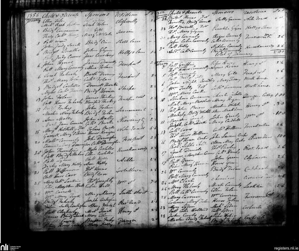 Rahoon; County of Galway; Diocese of Galway. Baptisms, Jan. 1856 to Feb. 1856