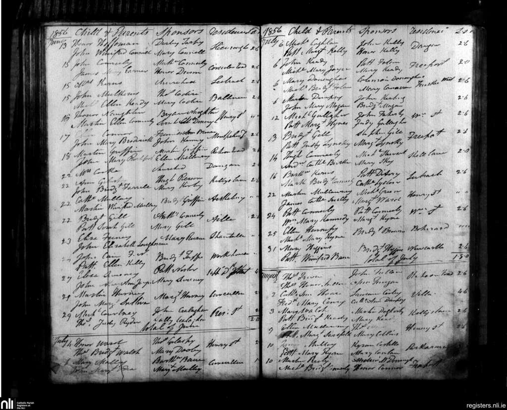 Rahoon; County of Galway; Diocese of Galway. Baptisms, June 1856 to Aug. 1856