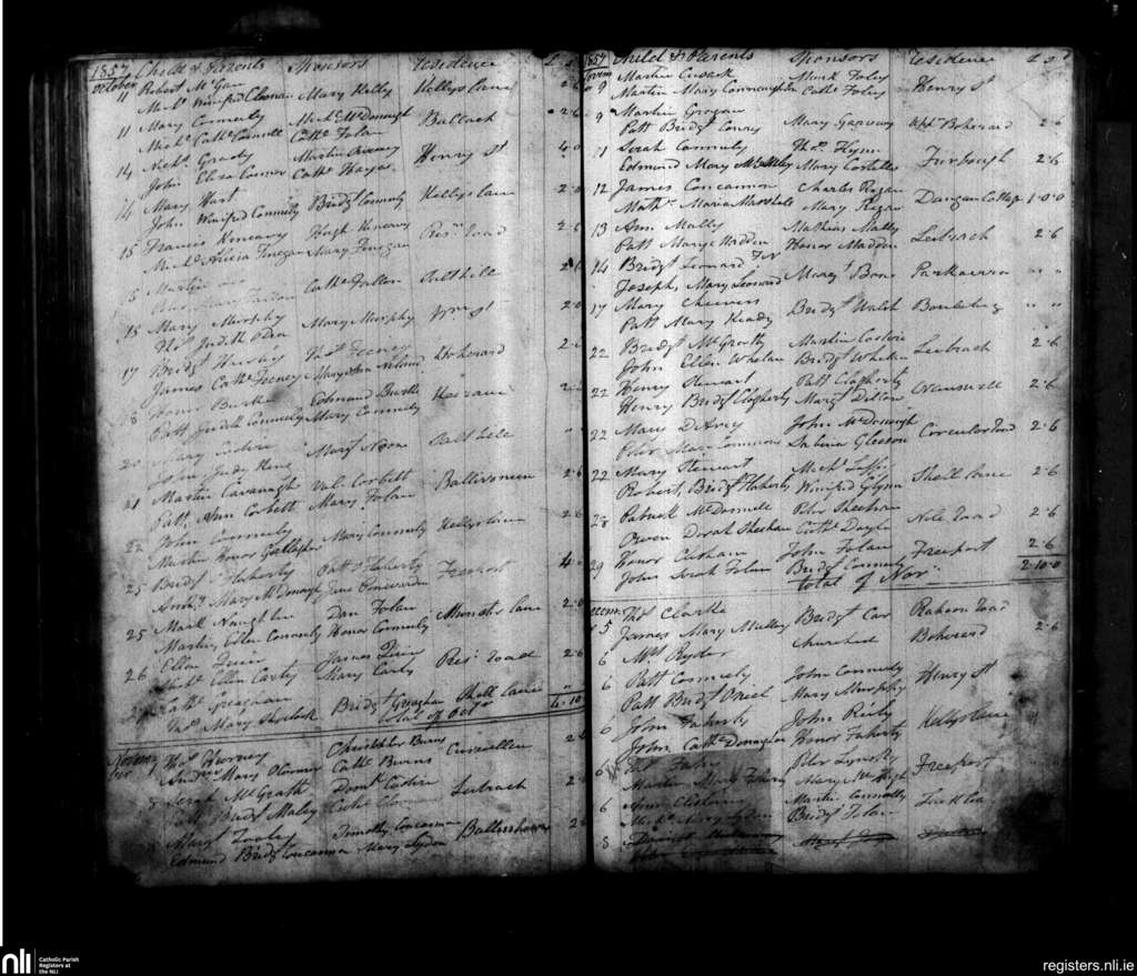 Rahoon; County of Galway; Diocese of Galway. Baptisms, Oct. 1857 to Dec. 1857