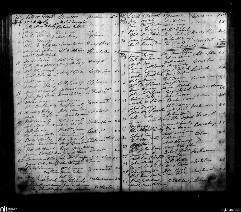 Rahoon; County of Galway; Diocese of Galway. Baptisms, Apr. 1860 to May 1860