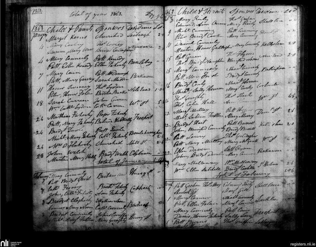 Rahoon; County of Galway; Diocese of Galway. Baptisms, Jan. 1863 to Mar. 1863