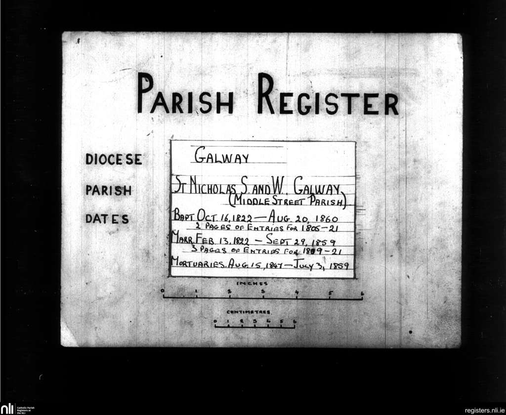 St. Nicholas South and West, Galway city; County of Galway; Diocese of Galway. Baptisms, Marriages, Mortuaries