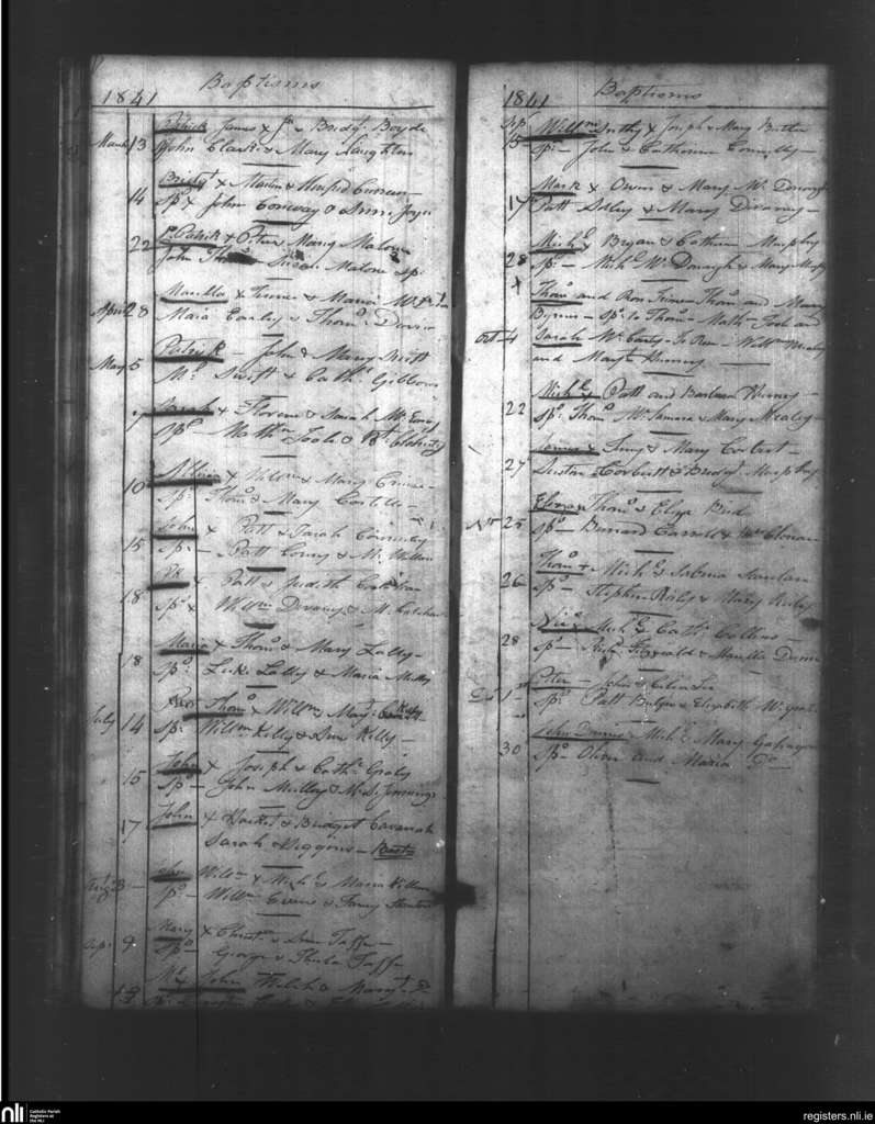 St. Nicholas South and West, Galway city; County of Galway; Diocese of Galway. Baptisms, Mar. 1841 to Dec. 1841