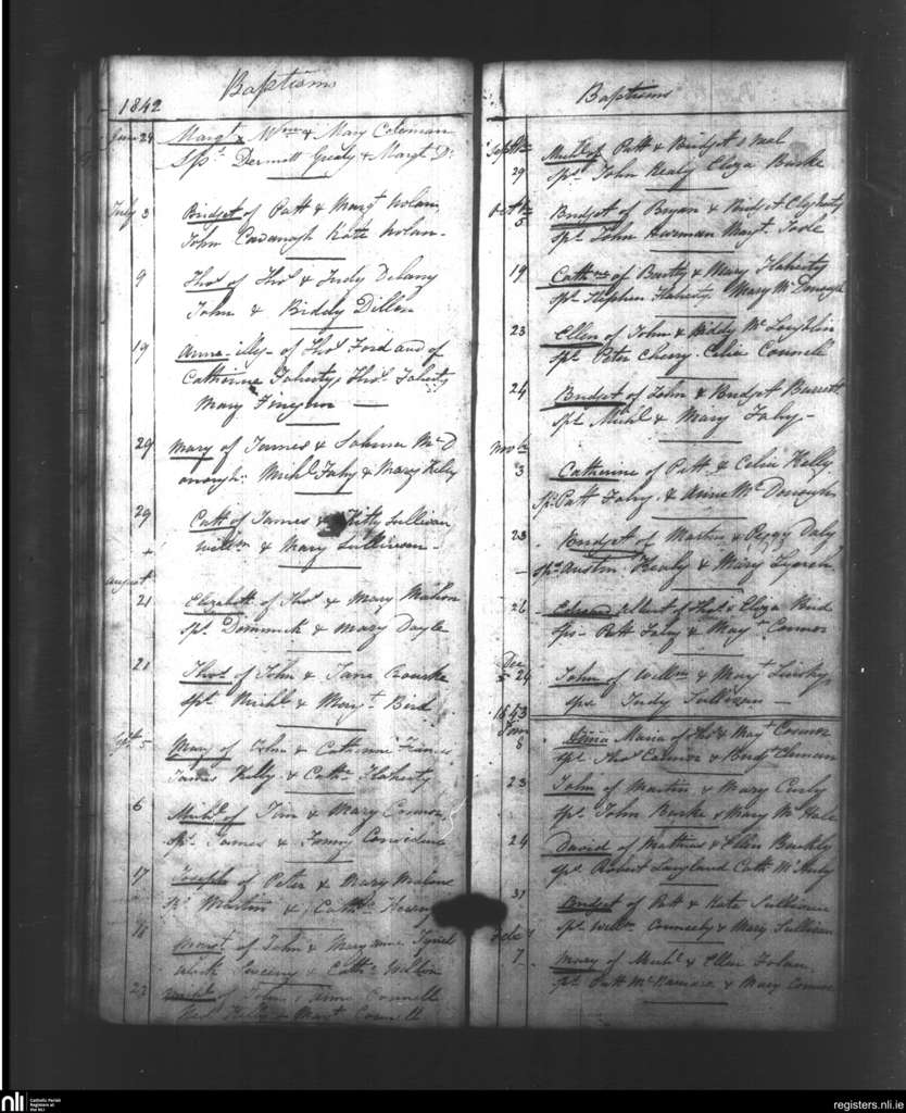 St. Nicholas South and West, Galway city; County of Galway; Diocese of Galway. Baptisms, June 1842 to Feb. 1843