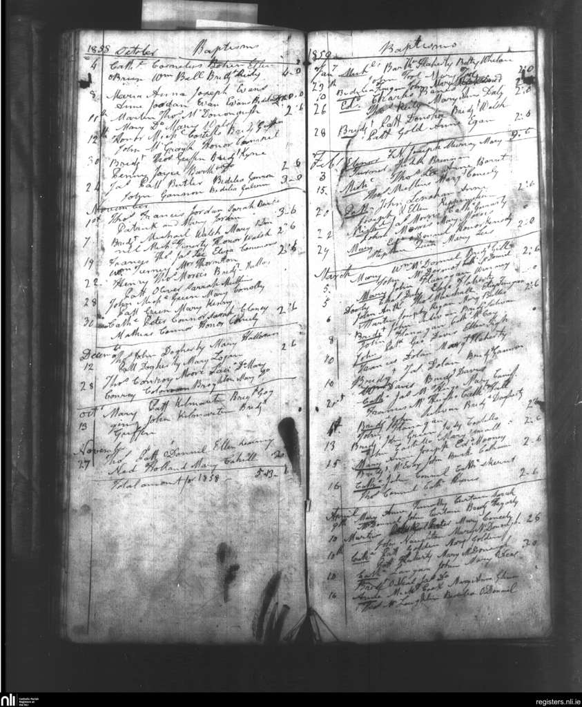 St. Nicholas South and West, Galway city; County of Galway; Diocese of Galway. Baptisms, Oct. 1858 to Apr. 1859