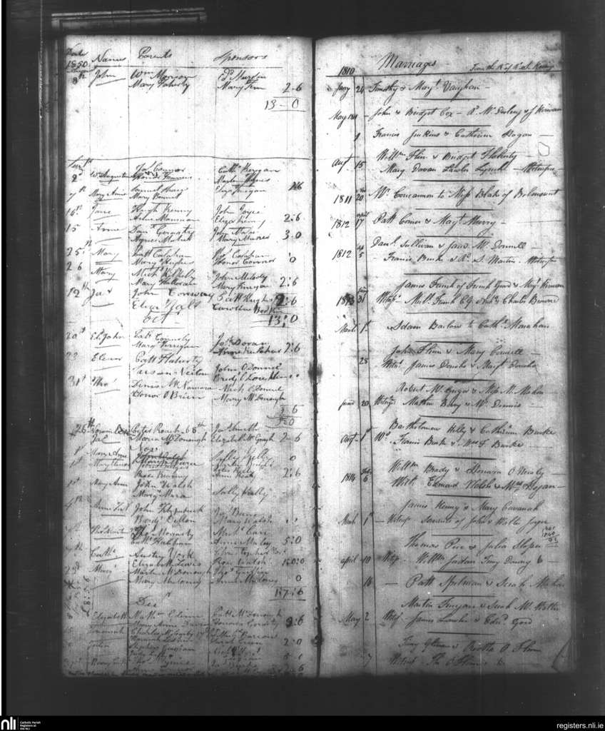 St. Nicholas South and West, Galway city; County of Galway; Diocese of Galway. Baptisms, Marriages, Jan. 1810 to Dec. 1850