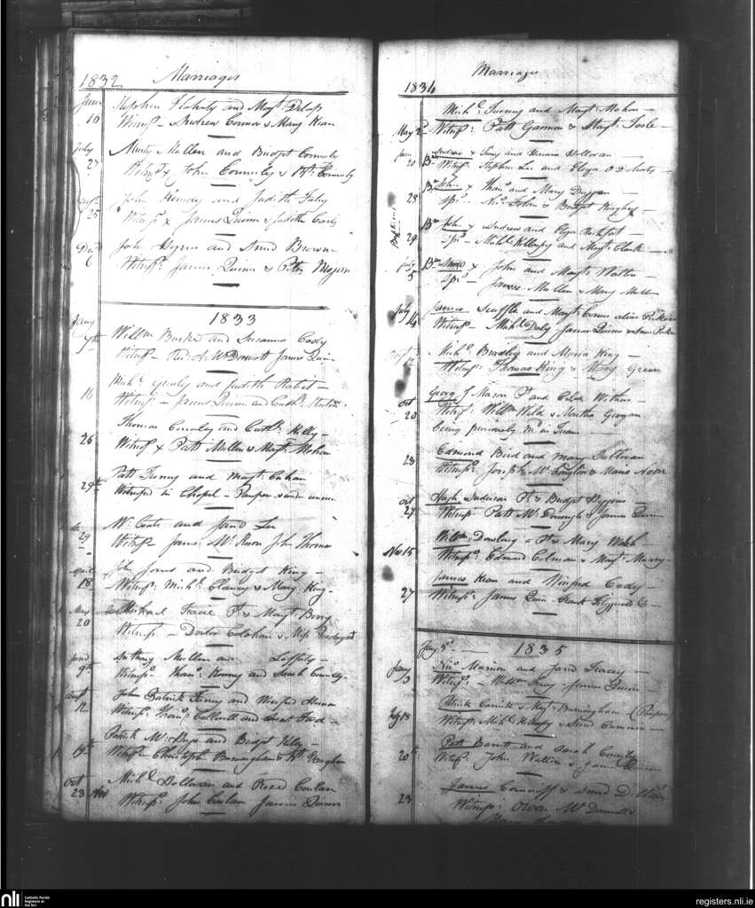 St. Nicholas South and West, Galway city; County of Galway; Diocese of Galway. Marriages, June 1832 to Feb. 1835