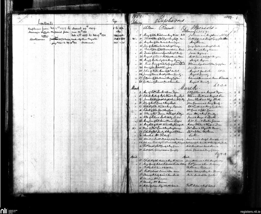 St. Nicholas East, Galway city; County of Galway; Diocese of Galway. Baptisms, Feb. 1859 to Apr. 1859