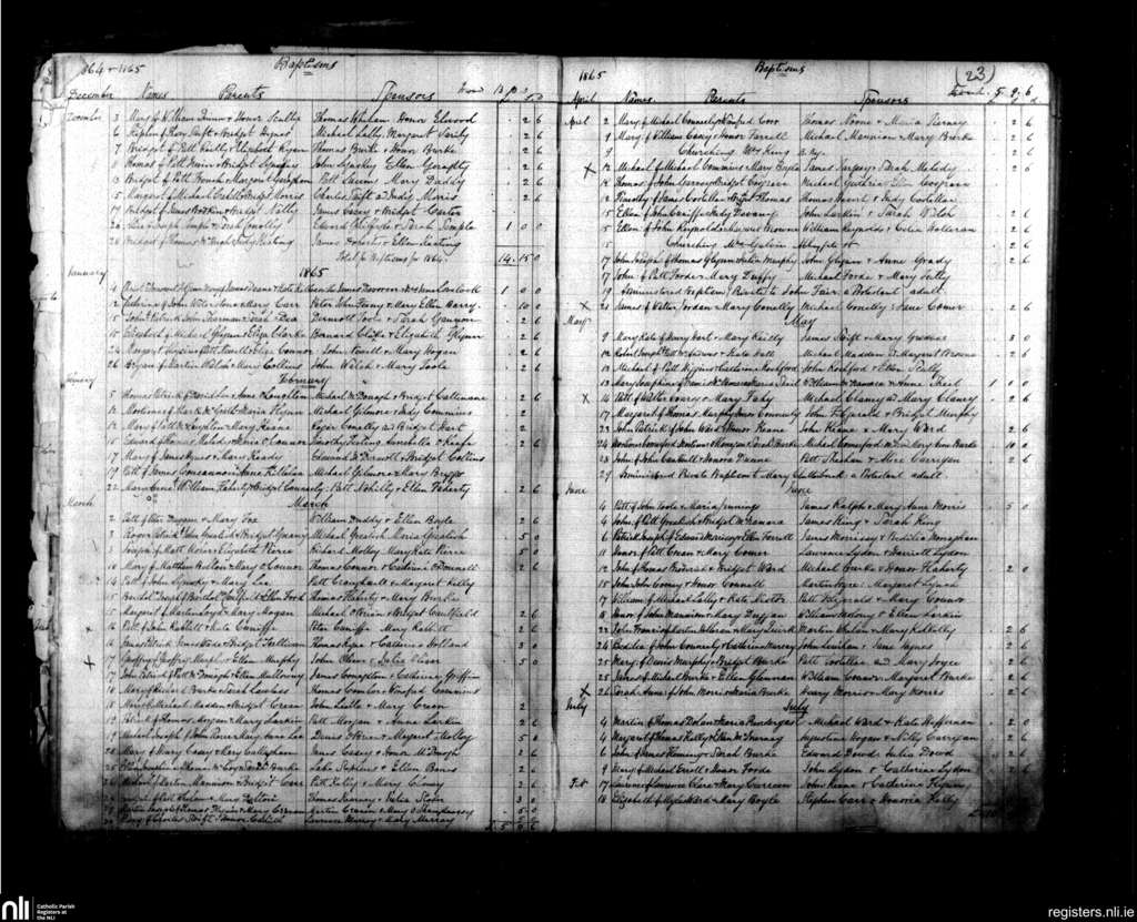 St. Nicholas East, Galway city; County of Galway; Diocese of Galway. Baptisms, Dec. 1864 to July 1865