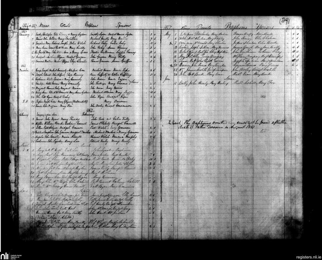St. Nicholas East, Galway city; County of Galway; Diocese of Galway. Baptisms, Dec. 1866 to Aug. 1867