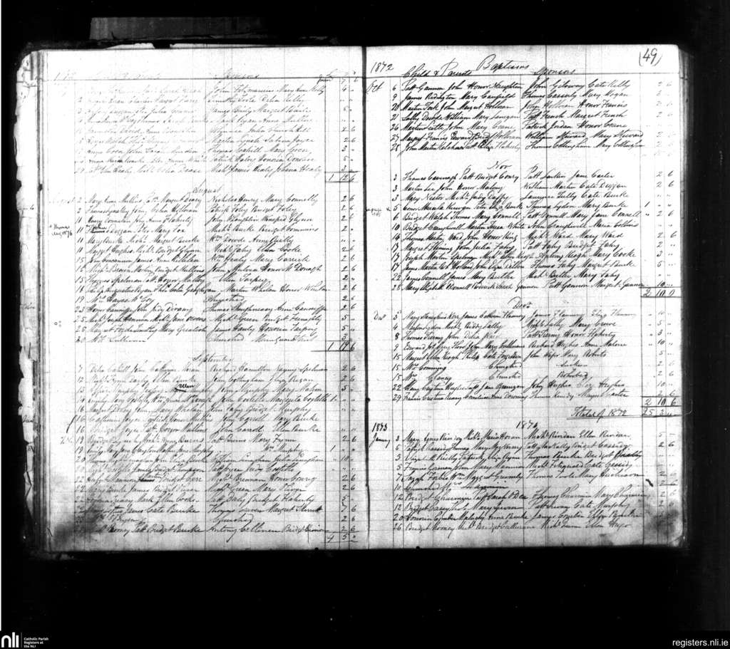 St. Nicholas East, Galway city; County of Galway; Diocese of Galway. Baptisms, July 1872 to Jan. 1873