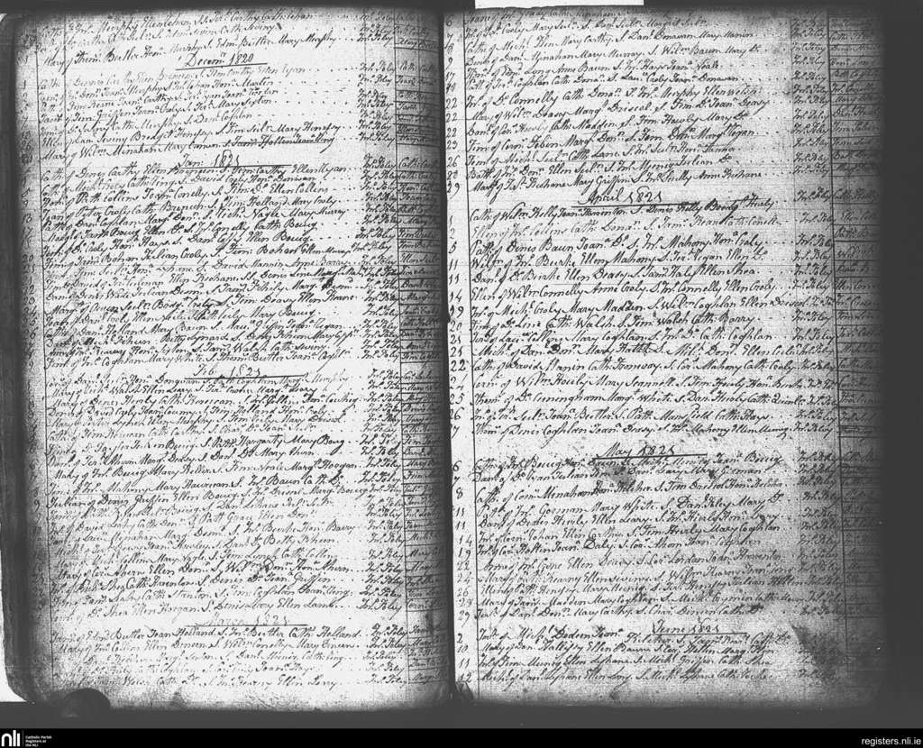 Kilbrittain; County of Cork; Diocese of Cork and Ross. Baptisms, Nov. 1820 to June 1821