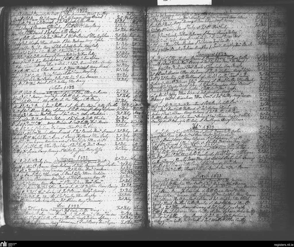 Kilbrittain; County of Cork; Diocese of Cork and Ross. Baptisms, Sep. 1822 to Mar. 1823