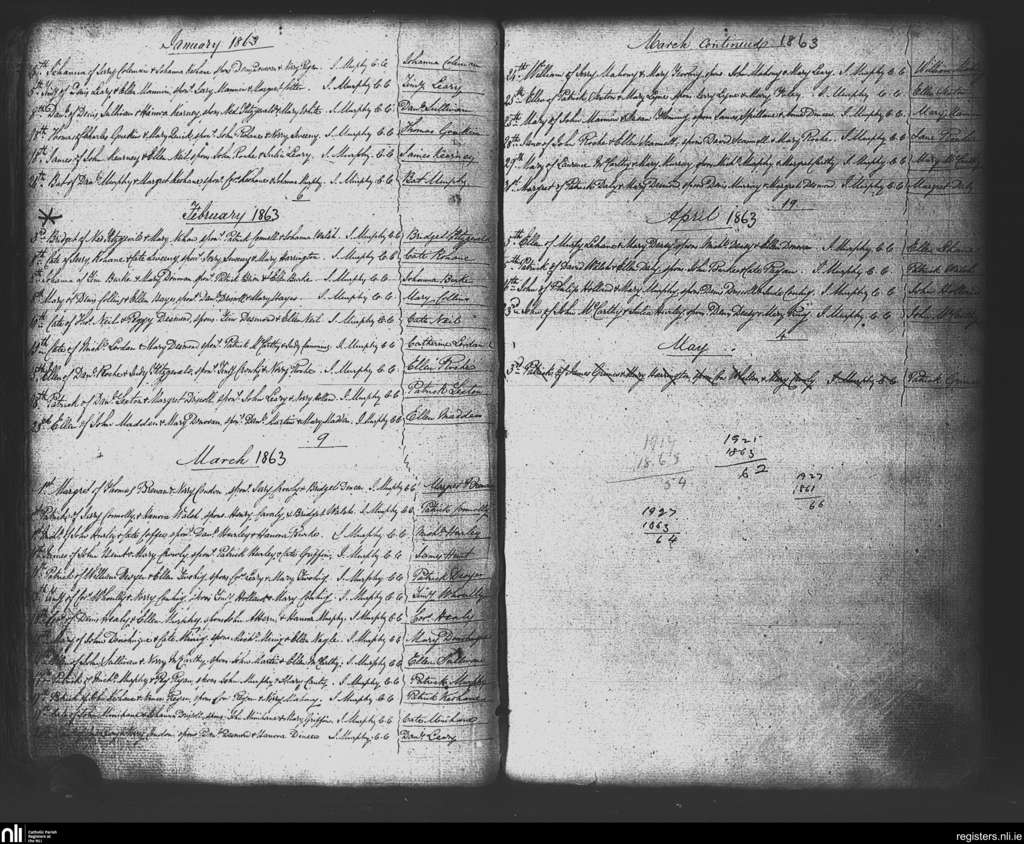 Kilbrittain; County of Cork; Diocese of Cork and Ross. Baptisms, Jan. 1863 to Apr. 1863