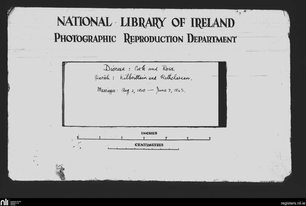 Kilbrittain; County of Cork; Diocese of Cork and Ross. Marriages