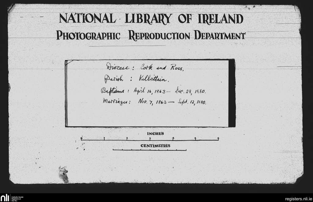 Kilbrittain; County of Cork; Diocese of Cork and Ross. Baptisms, Marriages