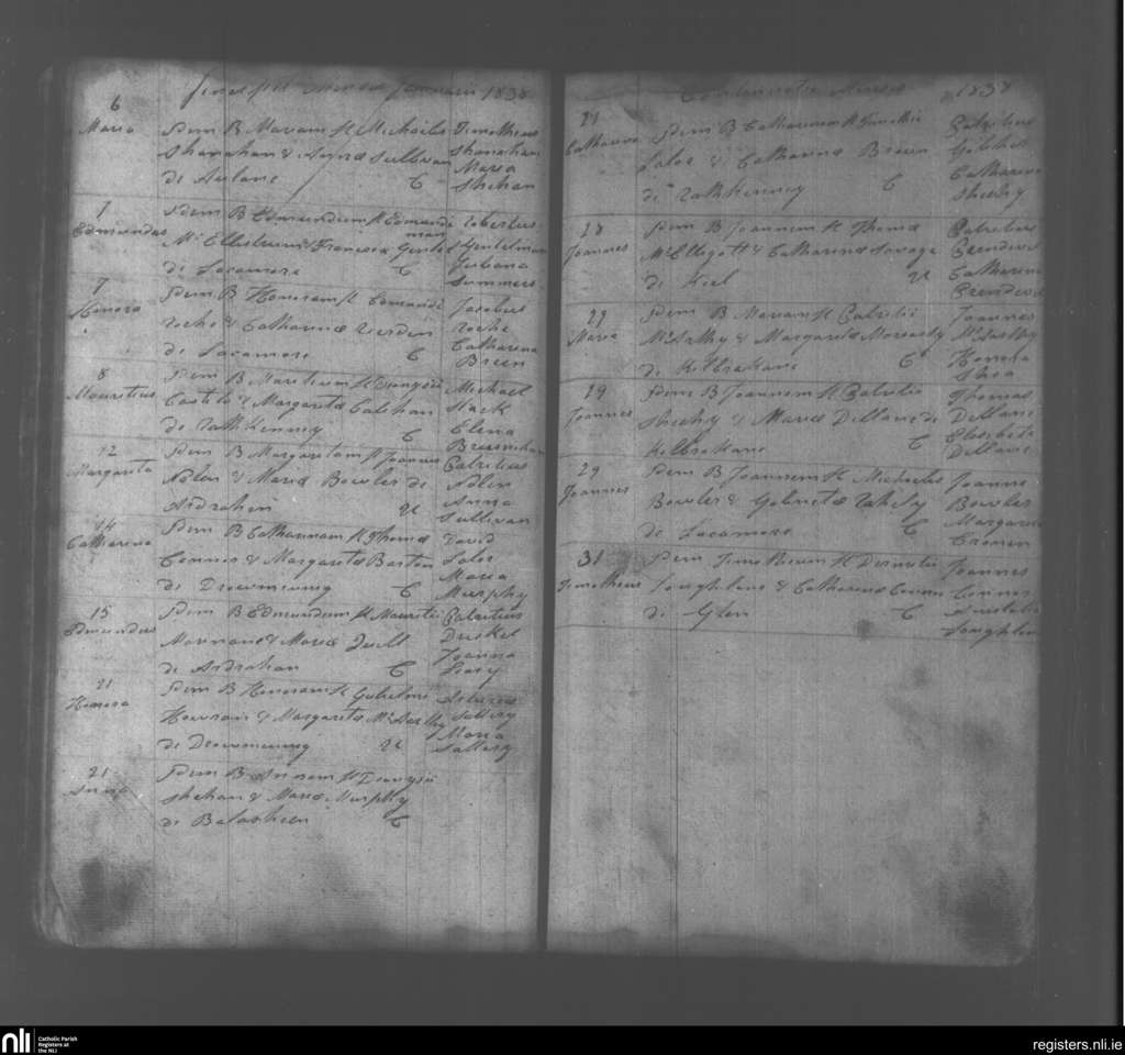 Abbeydorney; County of Kerry; Diocese of Kerry. Baptisms, Jan. 1838