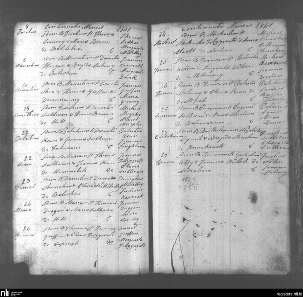Abbeydorney; County of Kerry; Diocese of Kerry. Baptisms, Aug. 1841