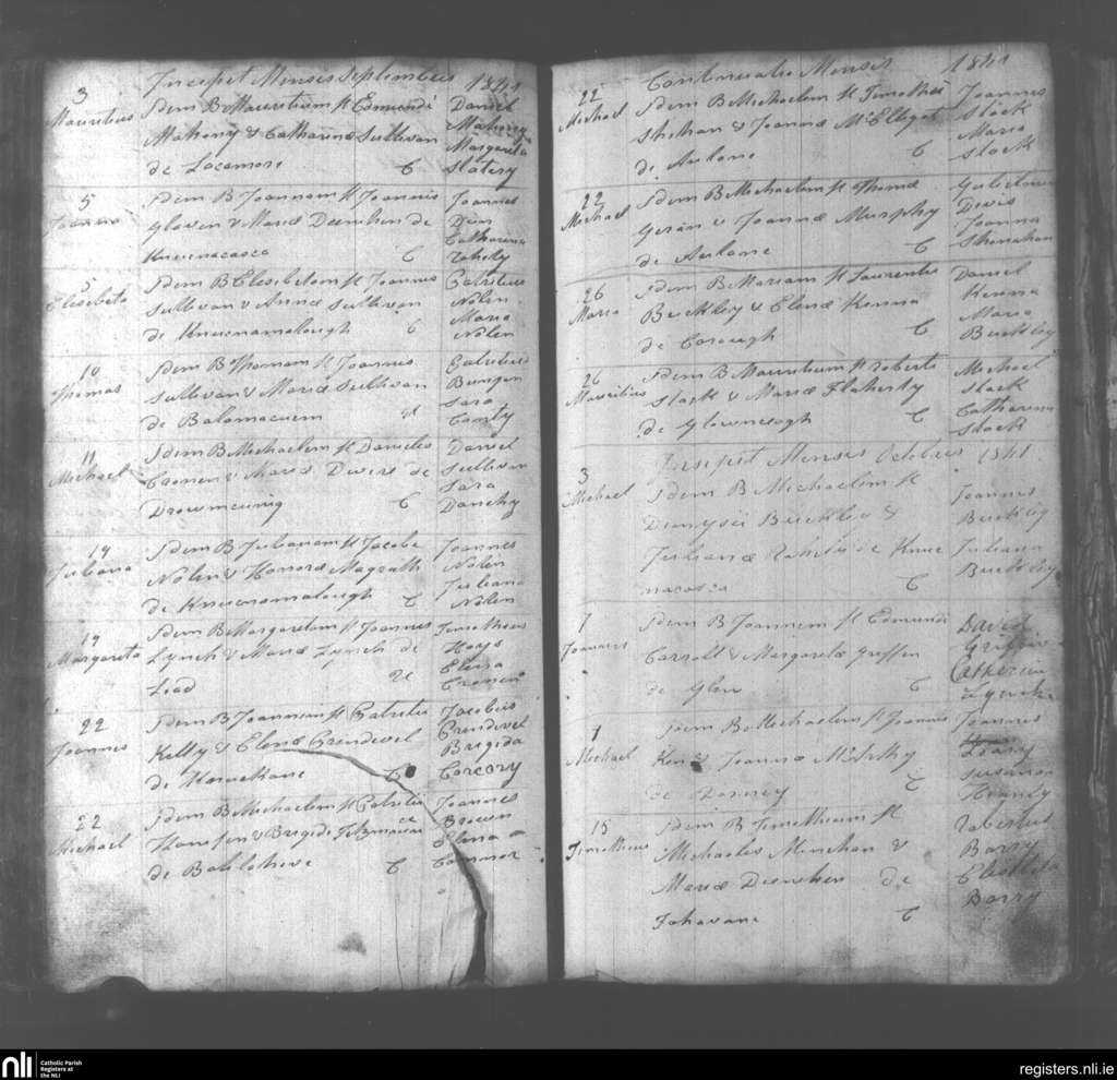 Abbeydorney; County of Kerry; Diocese of Kerry. Baptisms, Sep. 1841 to Oct. 1841