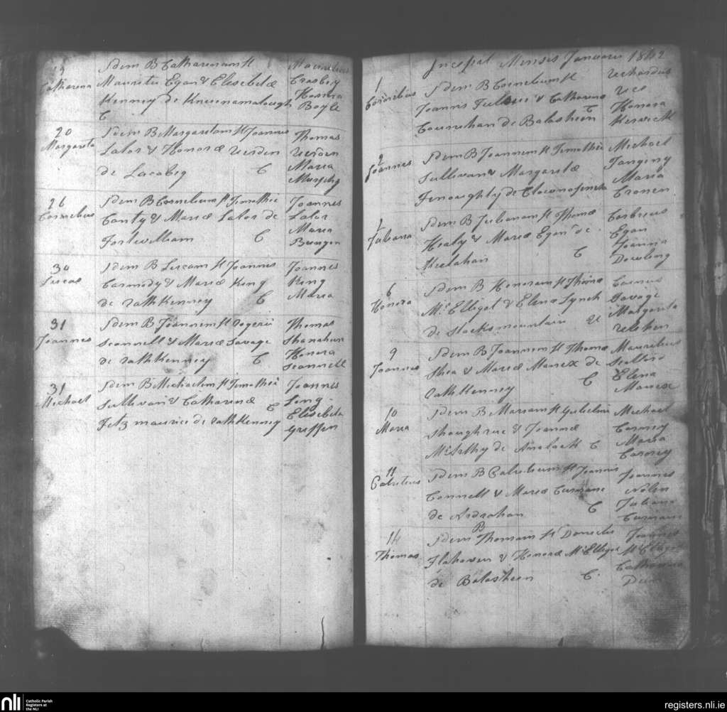 Abbeydorney; County of Kerry; Diocese of Kerry. Baptisms, Dec. 1841 to Jan. 1842