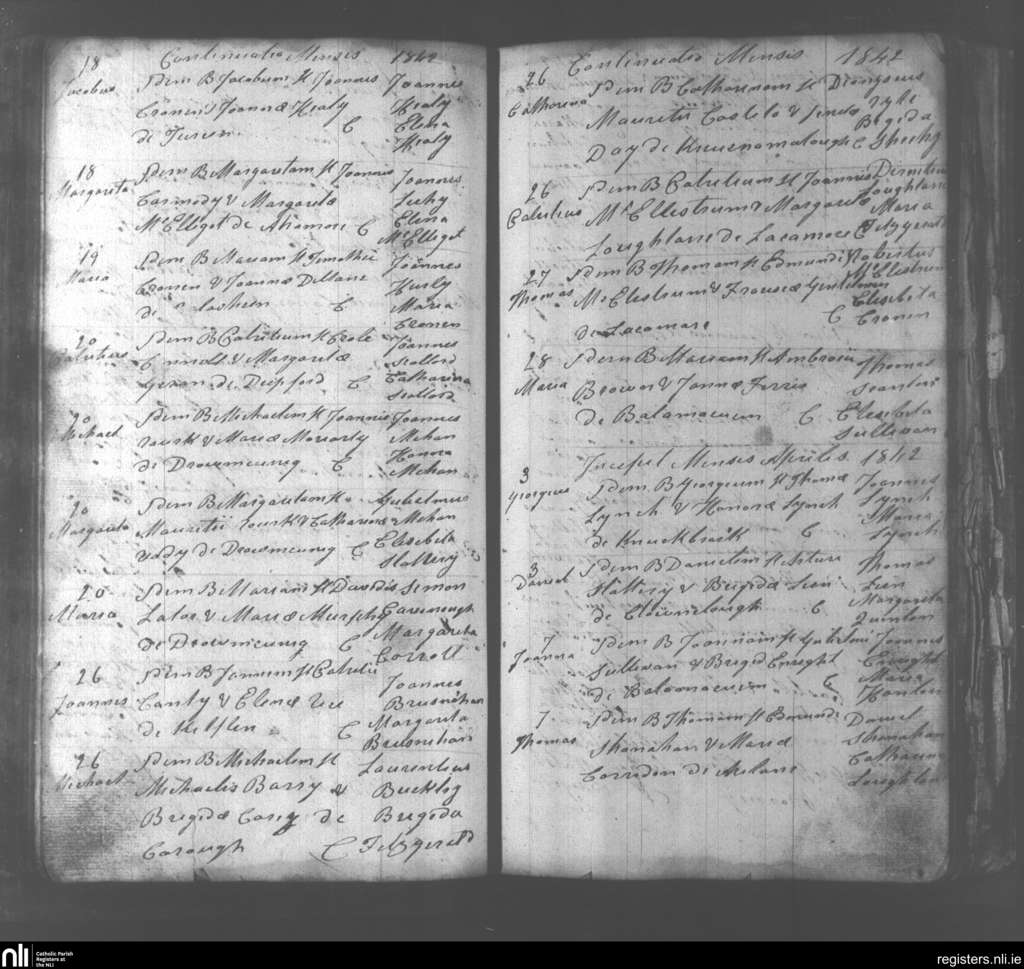 Abbeydorney; County of Kerry; Diocese of Kerry. Baptisms, Mar. 1842 to Apr. 1842
