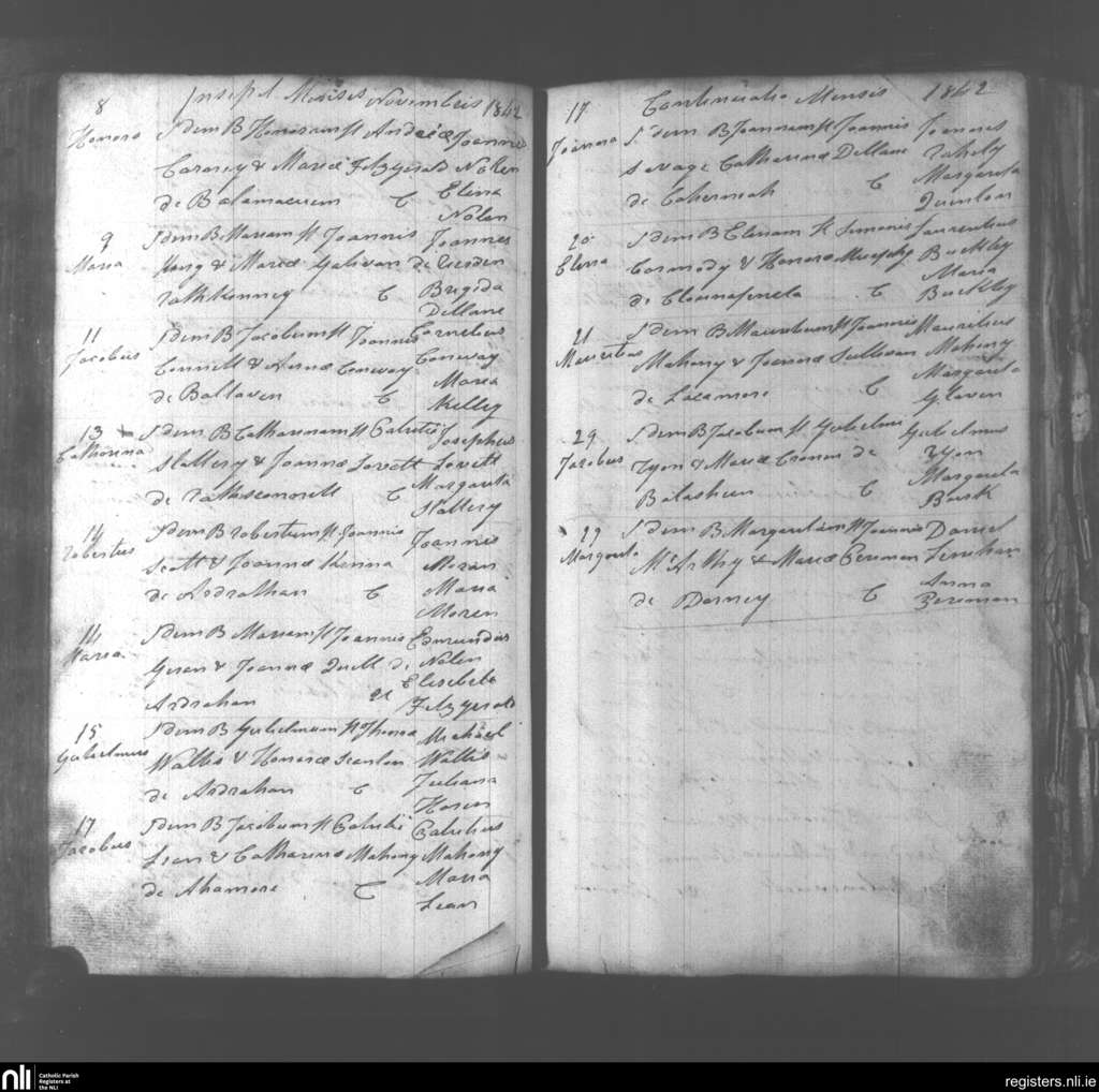 Abbeydorney; County of Kerry; Diocese of Kerry. Baptisms, Nov. 1842