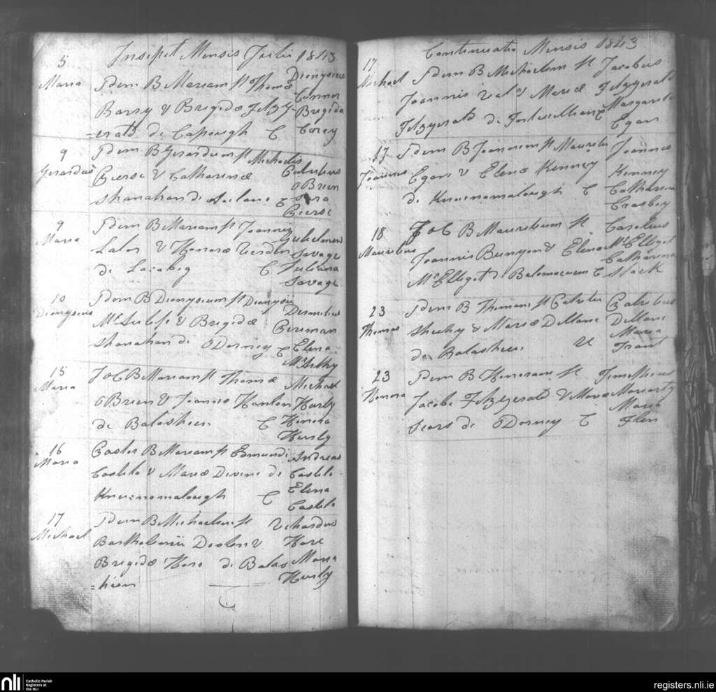 Abbeydorney; County of Kerry; Diocese of Kerry. Baptisms, July 1843