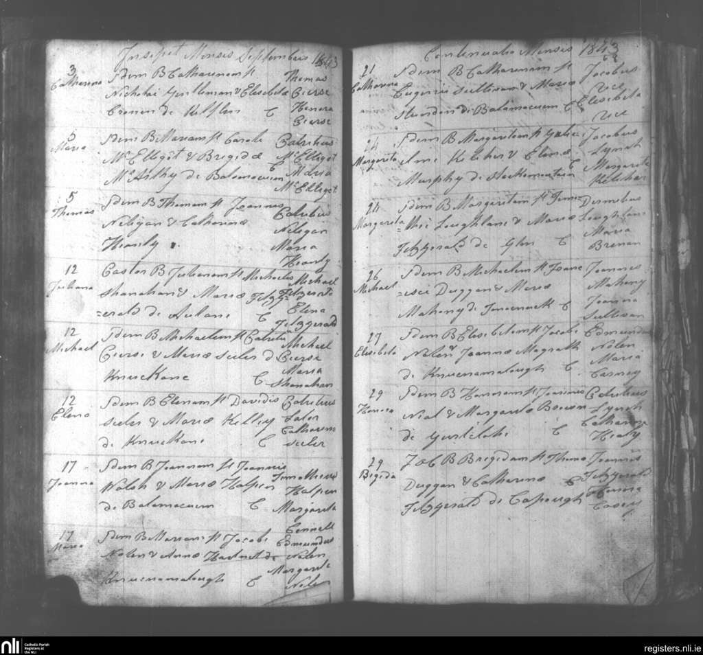 Abbeydorney; County of Kerry; Diocese of Kerry. Baptisms, Sep. 1843