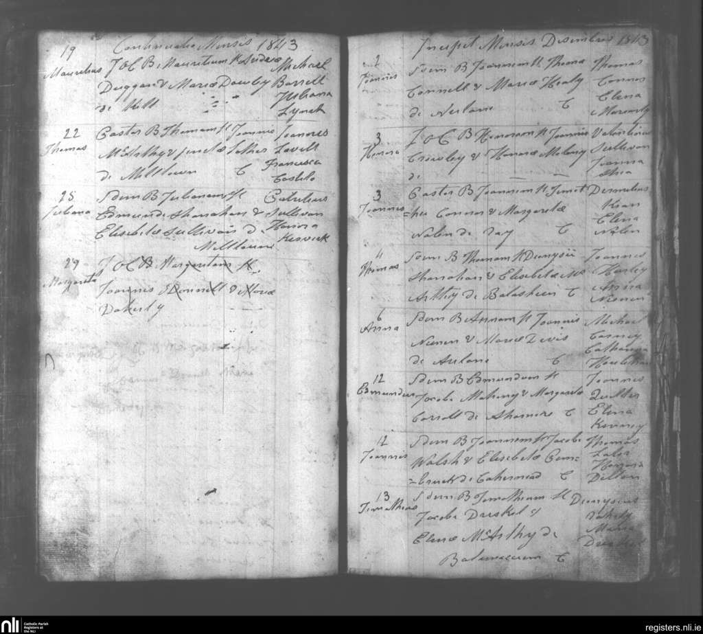 Abbeydorney; County of Kerry; Diocese of Kerry. Baptisms, Nov. 1843 to Dec. 1843