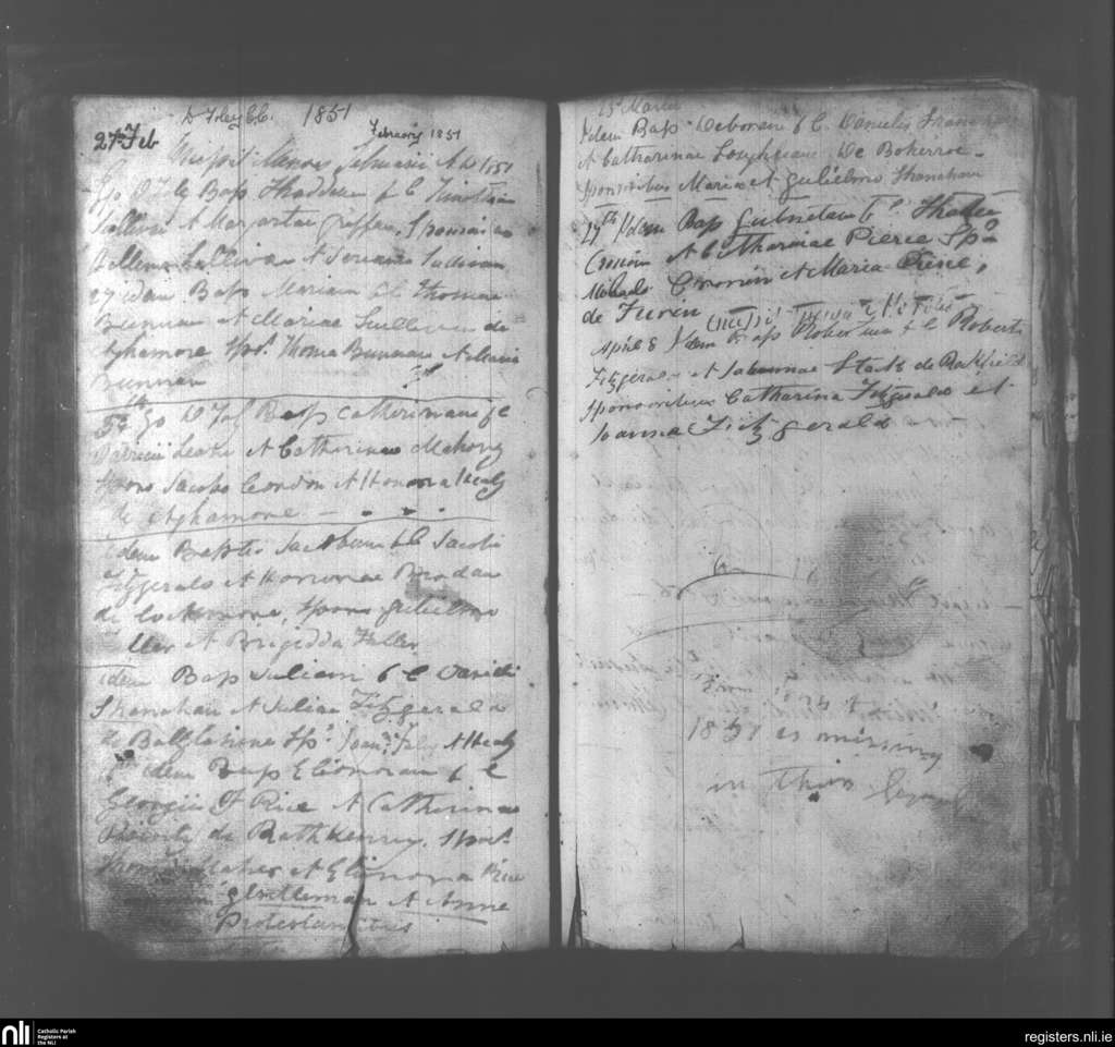 Abbeydorney; County of Kerry; Diocese of Kerry. Baptisms, Feb. 1851 to Apr. 1851