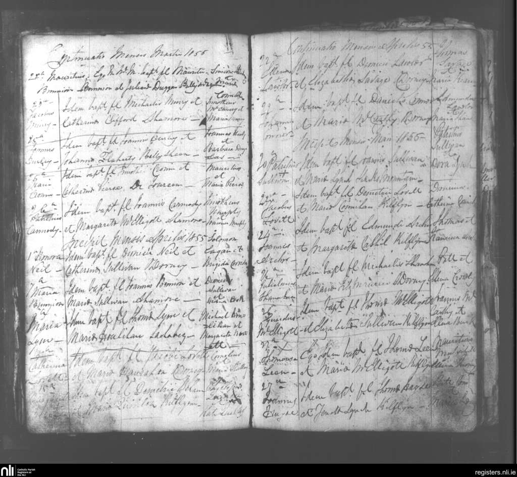 Abbeydorney; County of Kerry; Diocese of Kerry. Baptisms, Mar. 1855 to May 1855