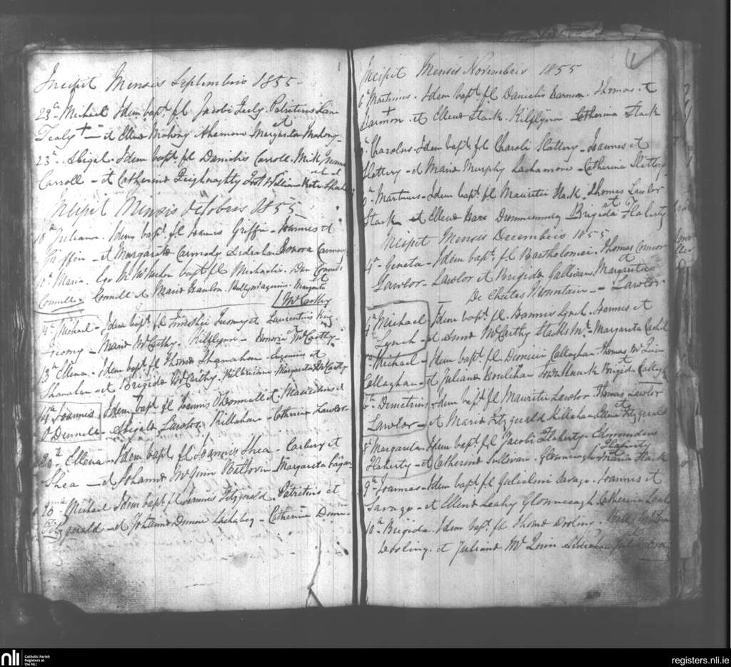 Abbeydorney; County of Kerry; Diocese of Kerry. Baptisms, Sep. 1855 to Dec. 1855