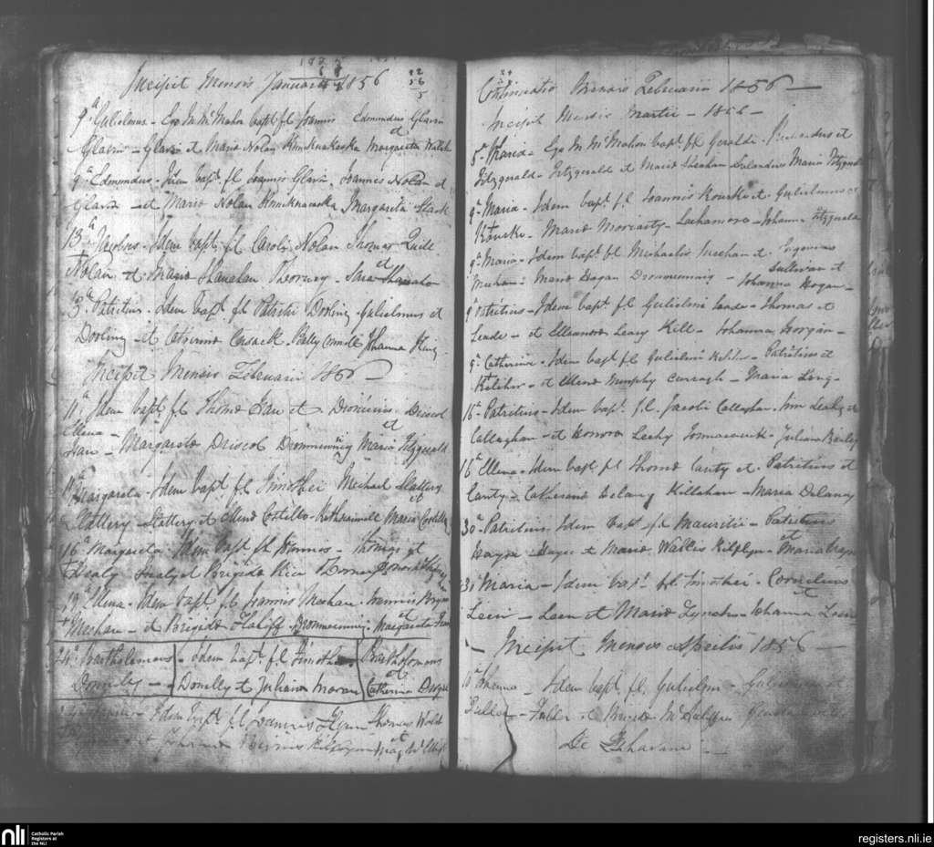 Abbeydorney; County of Kerry; Diocese of Kerry. Baptisms, Jan. 1856 to Apr. 1856
