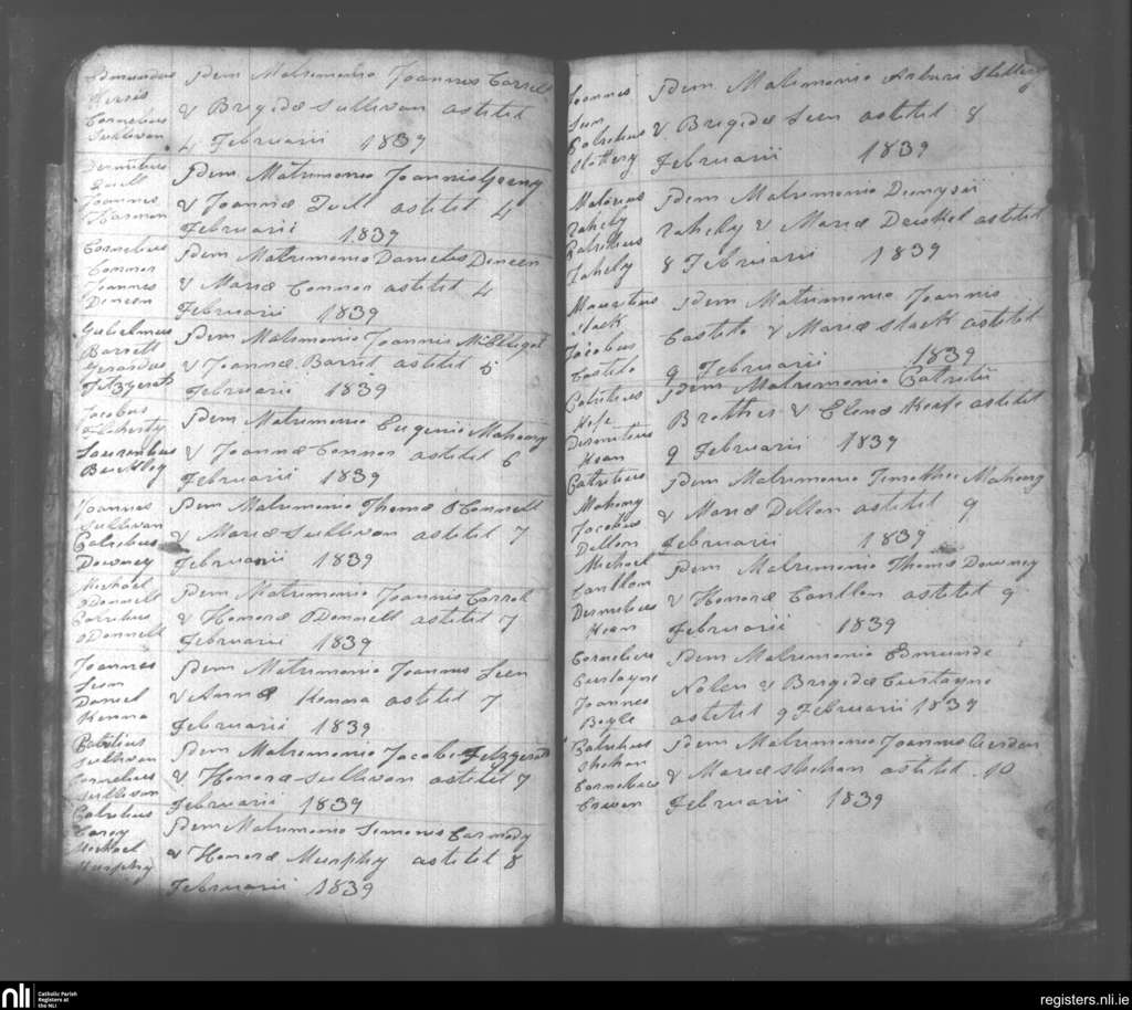 Abbeydorney; County of Kerry; Diocese of Kerry. Marriages, Feb. 1839