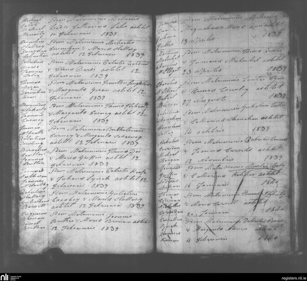 Abbeydorney; County of Kerry; Diocese of Kerry. Marriages, Feb. 1839 to Feb. 1840