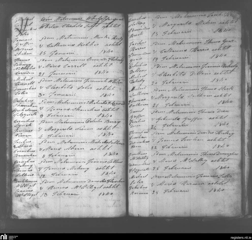 Abbeydorney; County of Kerry; Diocese of Kerry. Marriages, Jan. 1840 to Feb. 1840
