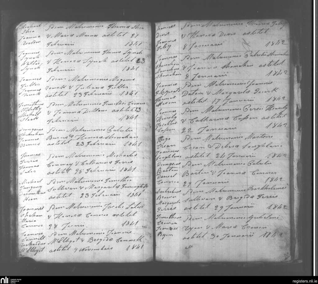 Abbeydorney; County of Kerry; Diocese of Kerry. Marriages, Feb. 1841 to Jan. 1842