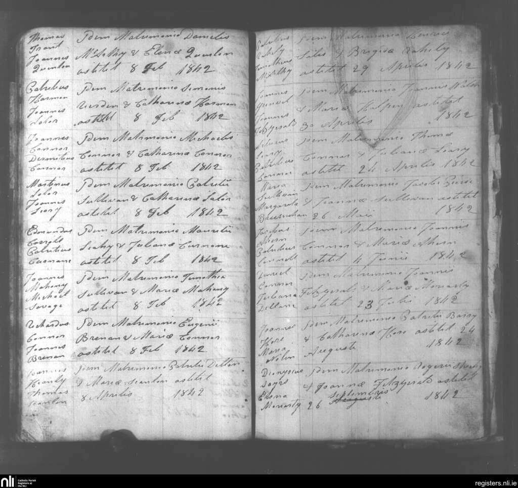 Abbeydorney; County of Kerry; Diocese of Kerry. Marriages, Feb. 1842 to Sep. 1842