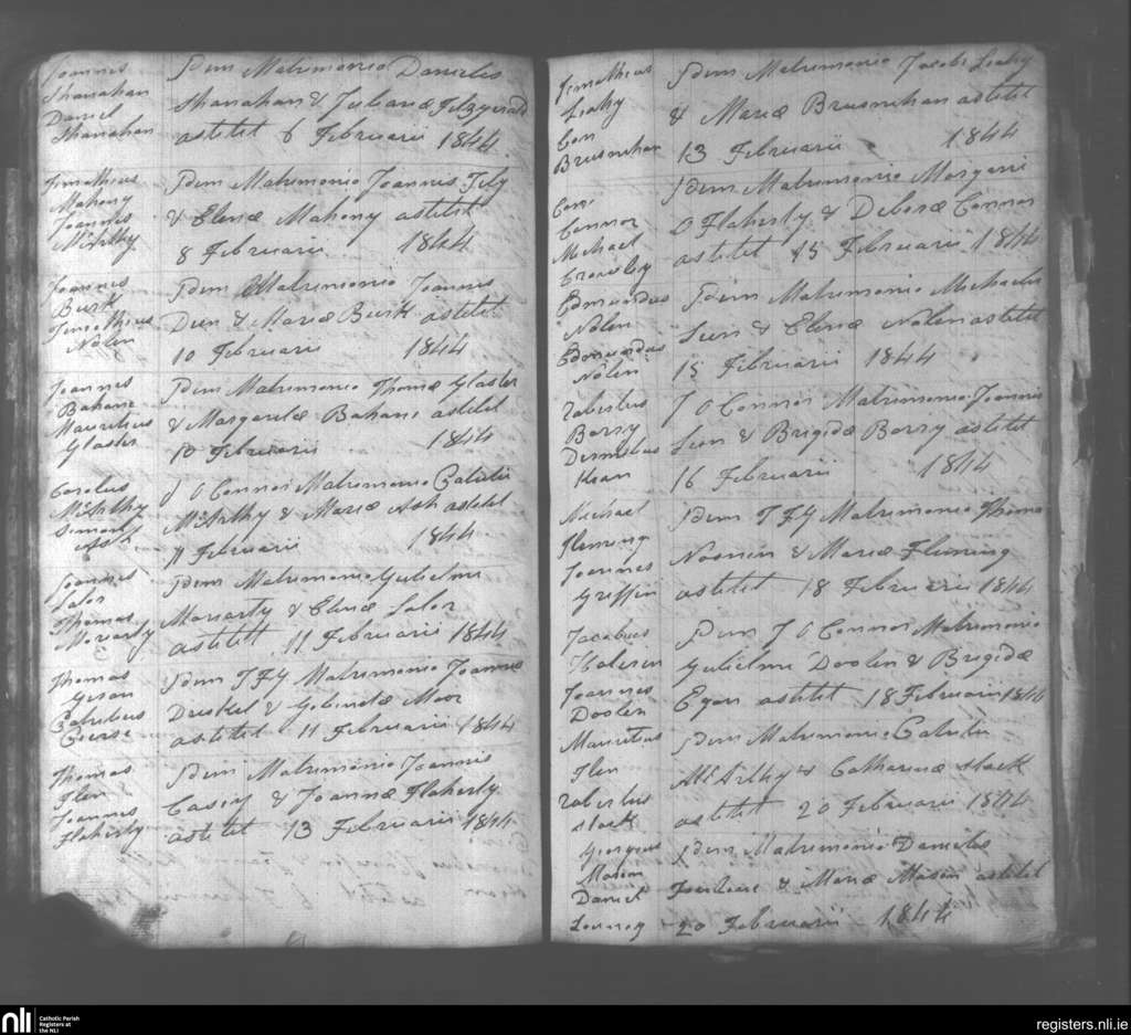 Abbeydorney; County of Kerry; Diocese of Kerry. Marriages, Feb. 1844